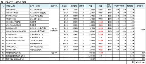 こんにちは、まいねです。8月末時点のはタイミング合わずアップできませんでしたが、9月末時点のポートフォリオを以下に掲載します。8~9月にかけてシスコシステムズ(CISCO)買い増しと新規にガーミン(GRMN)を購入しています。 train-fishing.hatenablog.…